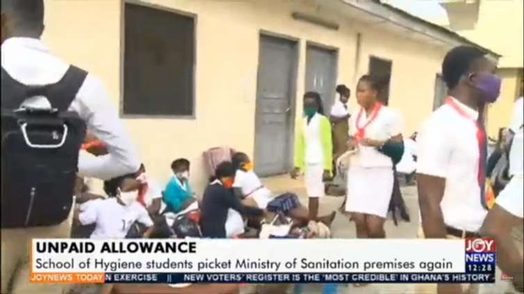 Students of the Ghana School of Hygiene for the second time in two weeks are picketing at the premises of the Sanitation Ministry.